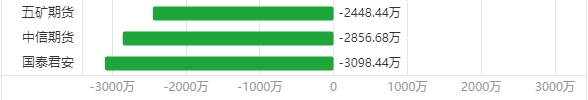 一周内国泰君安、中信期货、五矿期货在碳酸锂上亏损居前,三机构分别亏损3098.44万元,2856.68万元,2448.44万元。